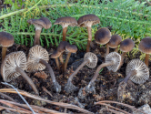 Chapeau jusqu'à 20 mm, très hygrophane, brun châtaigne à brun grisâtre: HODOPHILYUS HYMENOCYSTIS |